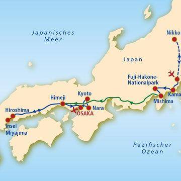- Linienflüge mit Emirates oder einer anderen renommierten Fluggesellschaft mit Umsteigeverbindung von Frankfurt nach Tokyo und zurück von Osaka