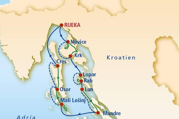 Erleben Sie die kroatische Adria an Bord eines klassischen Motorseglers und mit geführten Radtouren. Entdecken Sie die Stadt Rab und die herrliche Natur der vielen kleinen und großen Inseln. Zwischen den einzelnen Zielgebieten entdecken Sie bei geführten Radtouren die Inseln aus einer ganz neuen Perspektive.