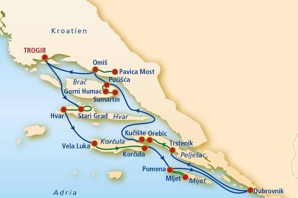 Erleben Sie die kroatische Adria an Bord eines klassischen Motorseglers und mit geführten Radtouren. Entdecken Sie die Städte Dubrovnik und Trogir und die herrliche Natur der vielen kleinen und großen Inseln. Zwischen den einzelnen Zielgebieten entdecken Sie bei geführten Radtouren die Inseln aus einer ganz neuen Perspektive.