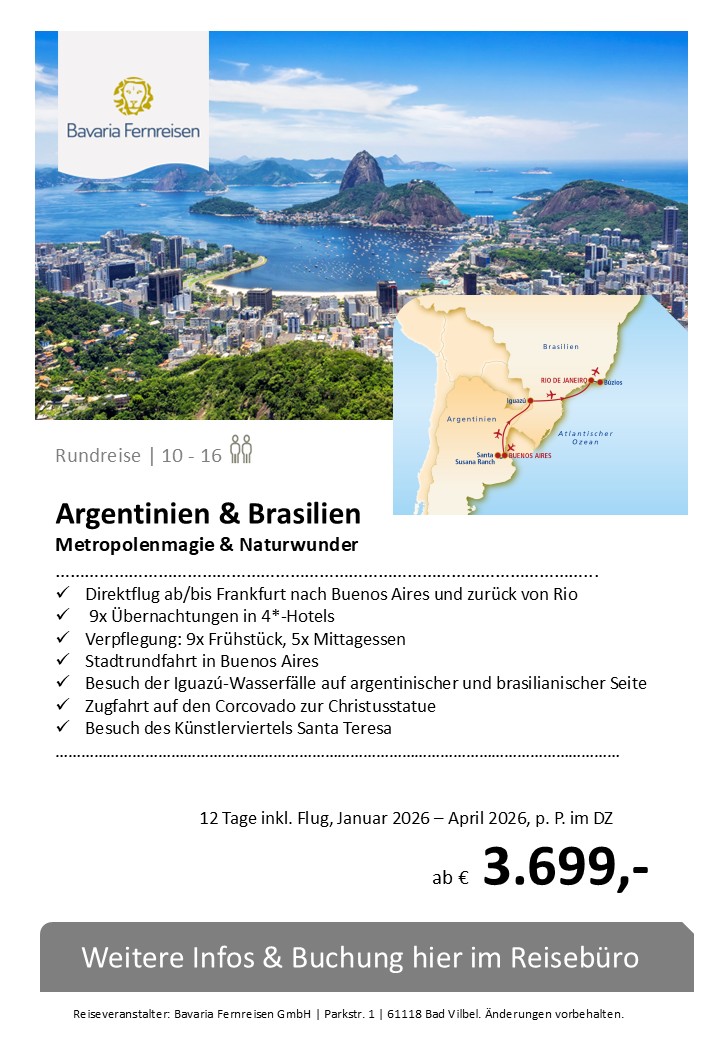 Für Reisebüros bieten wir für unsere Reisen .pdf und Bildformate an, in denen Sie Angebote von Bavaria Fernreisen publikumswirksam in Ihren Schaufenstern darstellen können. Diese können Sie hier herunterladen.